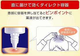 - 容器の先端を患部に軽く押し当てると,薬液が出ます。